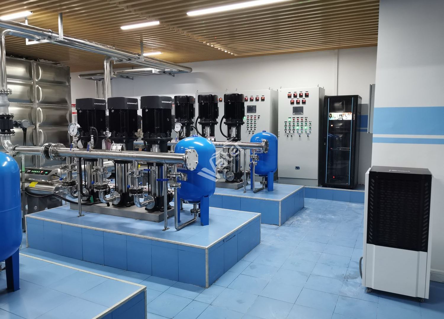 成功開發(fā)出各種凈水、污水一體化成套處理裝置、各類水泵控制柜、低壓配電柜及自來水廠、污水處理廠等自動控制系統(tǒng)的系列產(chǎn)品。